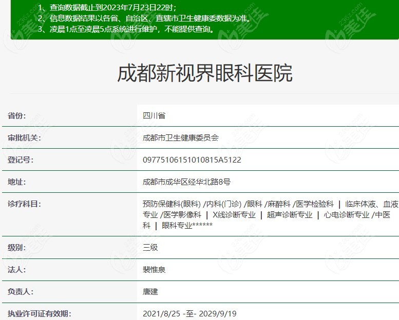 眼科由成都市卫生健康委员会批准成立,登记号是09775106151010815 A5122,正规可靠,并且新视界眼科国内有12家分店,大家可放心选择~