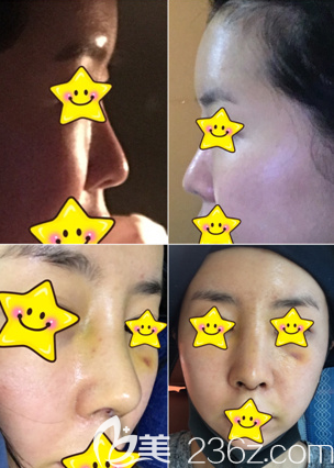 10 年前在别家做的鼻整形手术 ,做的很自然 , 没有什么变化 , 想重新再做一次, 面诊之后定下了手术时间,术后第1天真的是很难受 , 像感冒了一样也有低烧咳嗽,肿胀第二天开始就会慢慢消,冰敷做的很努力,之前做鼻子的时候到三周一直留了鼻血 , 可这次真的是就有一点淤青 , 恢复的很快 , 应该是跟院长的技术有关系的哈哈,术后 5 天拆了线 , 之后消肿就更快一些了,目前真的是很满意 , 周围的朋友还有妈妈都说做的很好。金贵洛院长真的是名不虚传 , 实力超赞