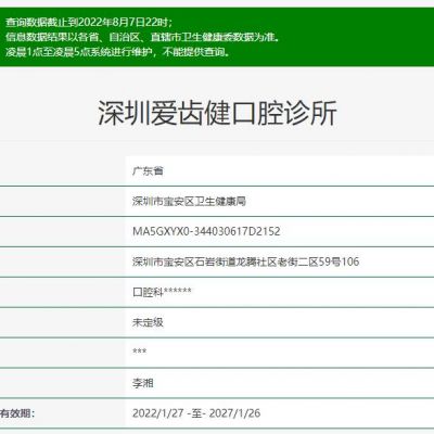 深圳爱齿健口腔诊所的地址在:广东省深圳市宝安区石岩街道老街路老街二区59号106,这是一家正规靠谱的齿科机构,有需要在深圳宝安区石岩街道看牙的话可以提前预约深圳...