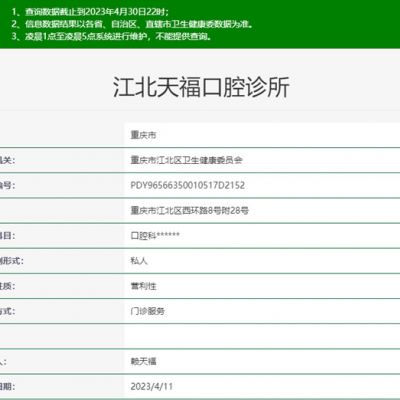 重庆晶品口腔诊所大渡口店,在卫健委官网登记注册的名称为重庆晶品口腔诊所管理连锁有限公司大渡口松青路口腔诊所,简称为重庆大渡口晶品口腔诊所松青路店。一、重庆晶品口...