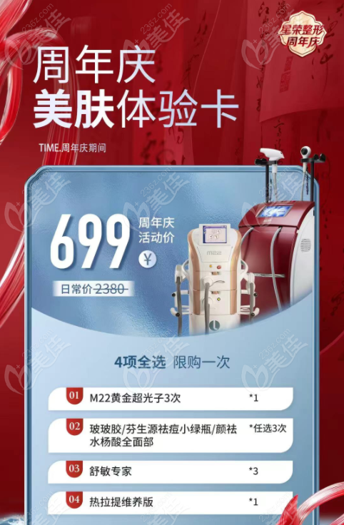 重庆星荣整形周年庆放大招!699元起抢M22黄金超光子+热拉提,还有美肤卡骨相卡限时抢